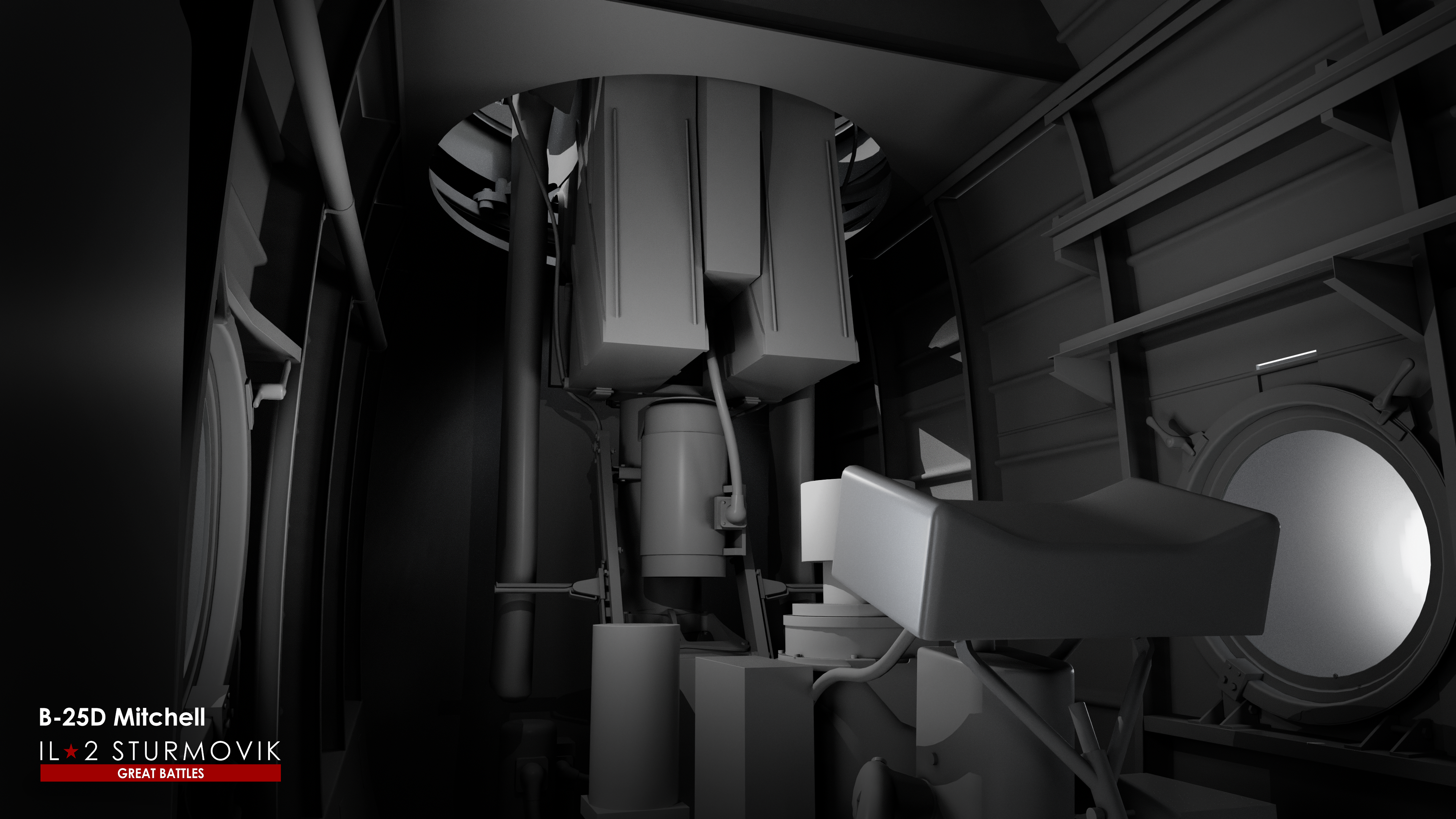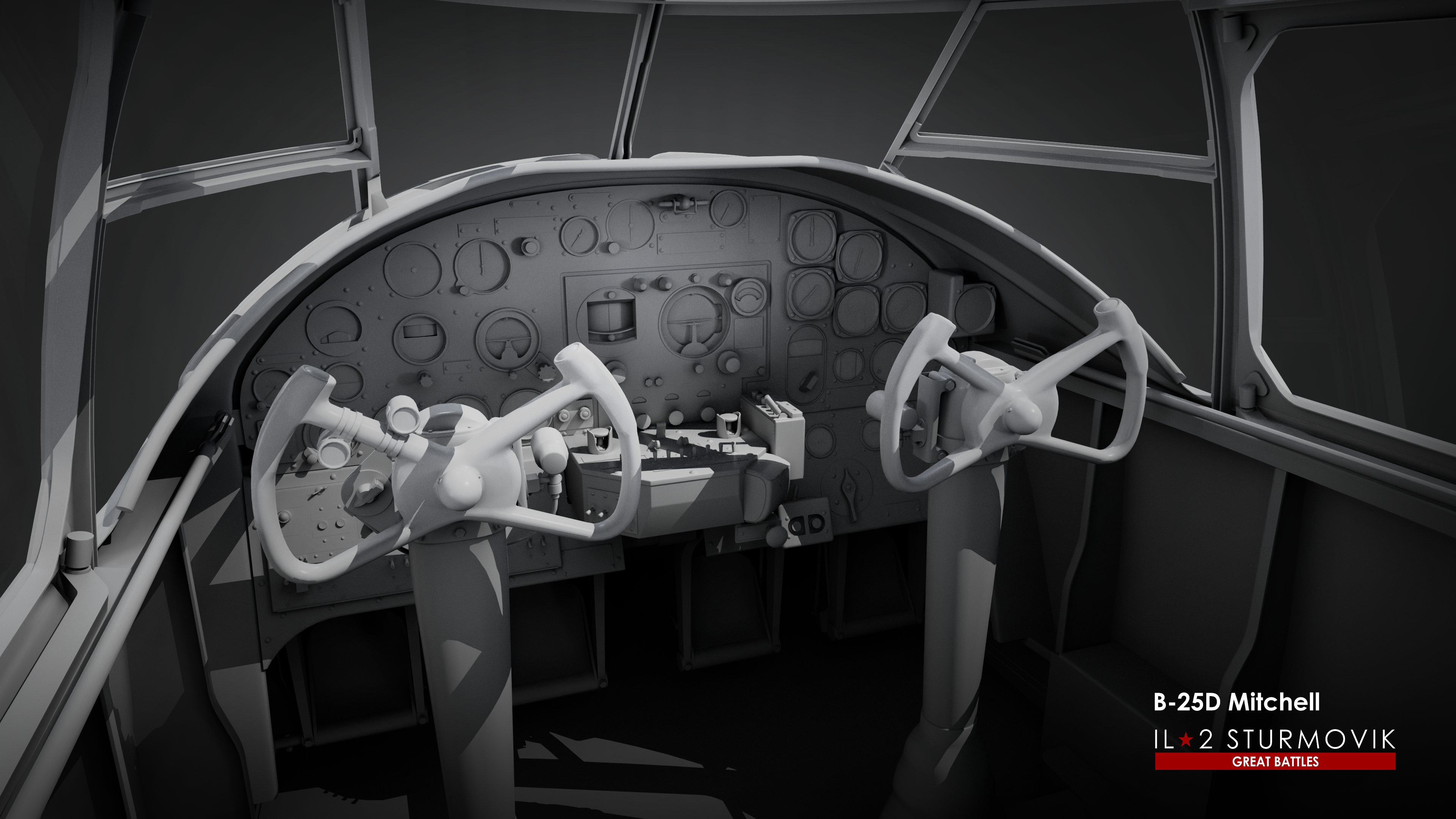 The second bomber is the North American B-25C/D Mitchell. There's probably no point in describing where the Mitchell fought, as it fought everywhere: on the European, Pacific, and Eastern Fronts. This bomber has been featured in Great Battles since the release of Battle of Bodenplatte as an AI-controlled aircraft. We've long talked about the possibility of one day making it controllable by players. And now that moment is coming. In the base version, the aircraft will be represented as a U.S. Army Air Force bomber with the appropriate instrumentation, bomb armament, and Norden sight. A Soviet version with Soviet bombs and an NKPB sight will also be featured. On the Eastern Front, the Mitchell was used primarily in long-range night bomber squadrons from late 1942 until the victory. Thus, in Great Battles, the B-25 will take part in the Battle of Kuban, Battle of Odessa, Battle of Leningrad, Battle of Normandy, and Operation Bodenplatte module timeframes.